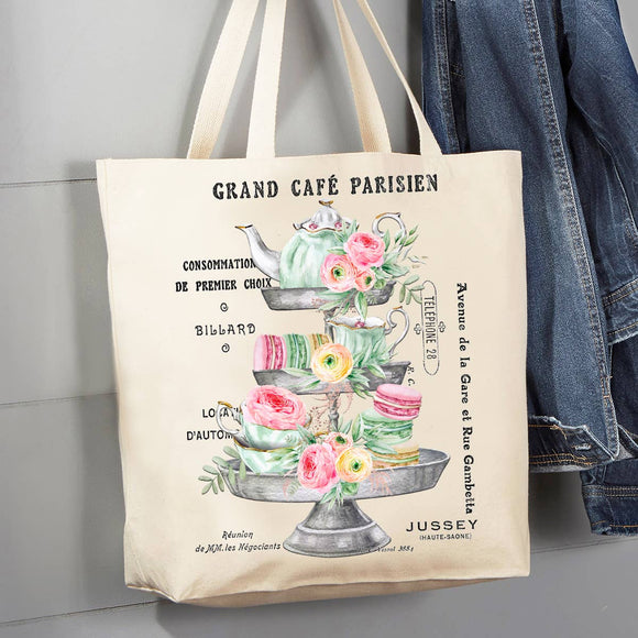 Vintage French Parisiean Tea Macarons 12 oz Canvas Tote Bag