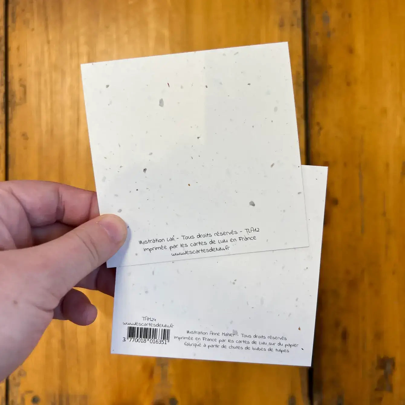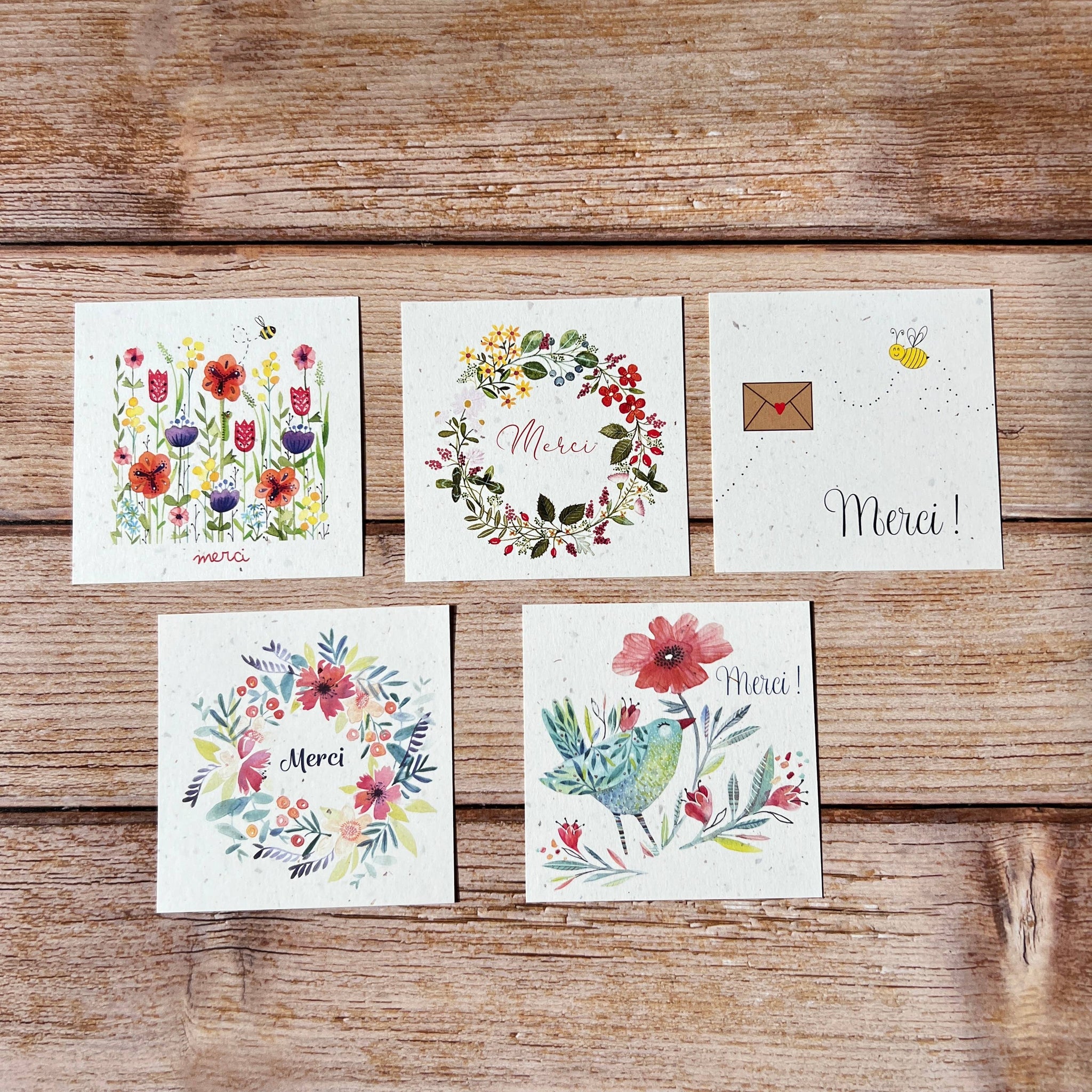 A set of 5 x 5 small square cards 9x9 cm double-sided print (on the back legal notice + space to write a small note)